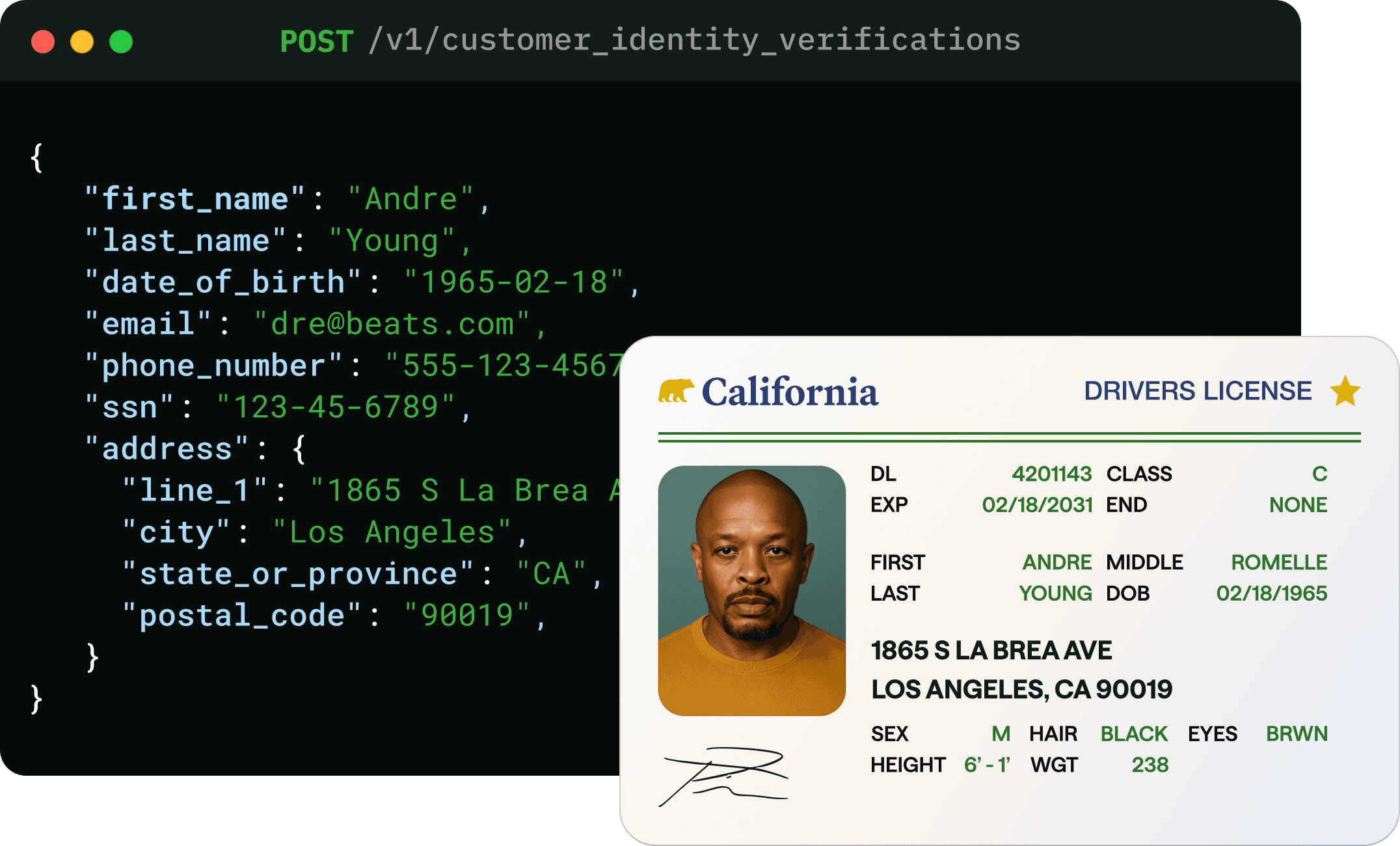 Embed KYC directly into your application. Our API handles identity verification, document authentication, and liveness checks so you can focus on building your product.